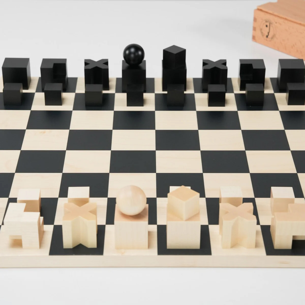 Ein Schachset, das die Bauhaus-Logik konsequent anwendet: Figuren werden als geometrische Funktionsformen gestaltet, damit du die Zuglogik schneller erkennst. Es ist Spielobjekt und Lehrstück zugleich.