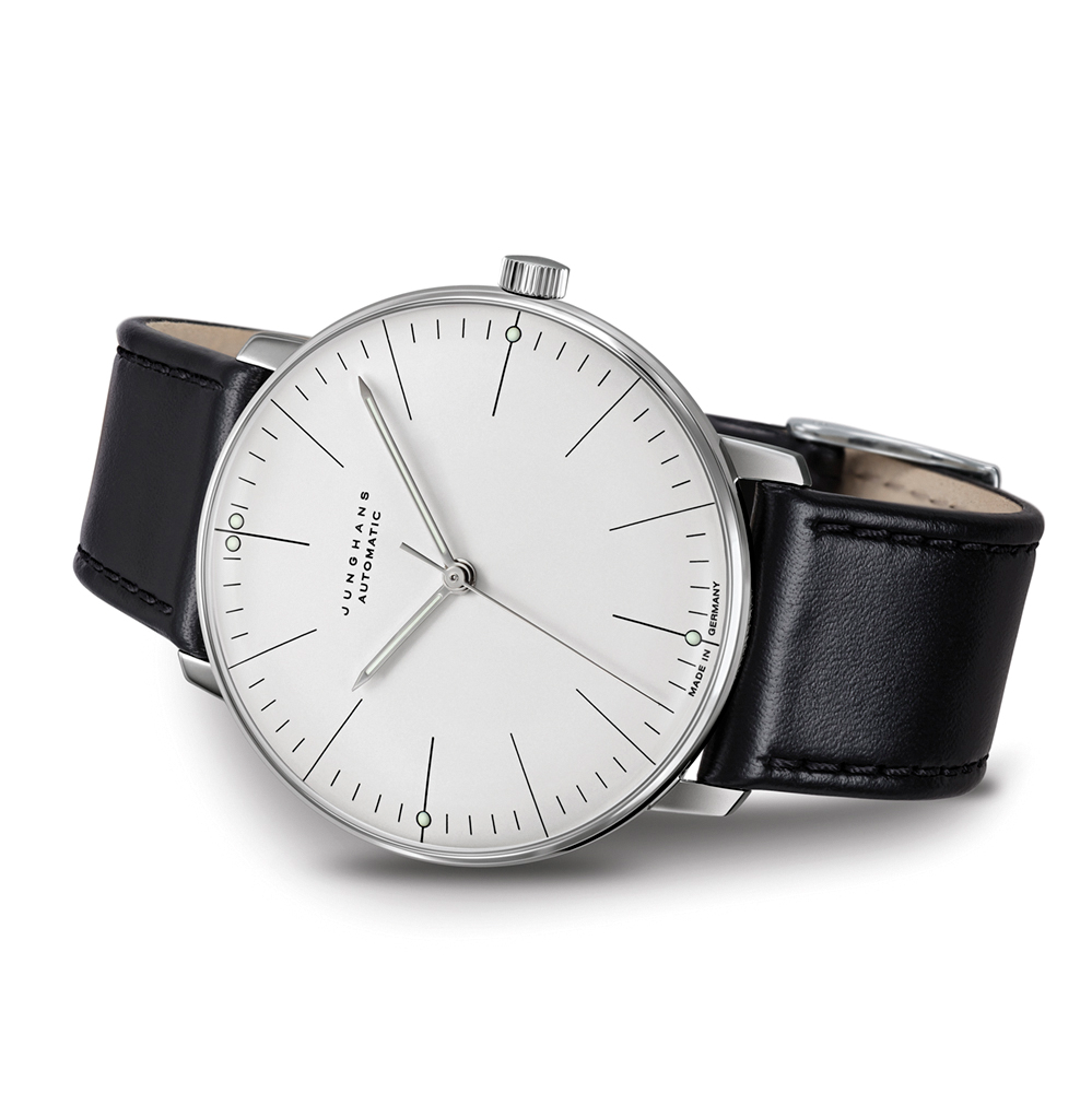 The Junghans Max Bill Automatic combines minimalist Bauhaus design with precise mechanics, a date display, and scratch-resistant sapphire crystal.