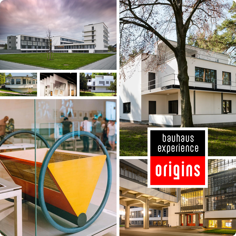 The Bauhaus building as a working machine. Glass, movement, pacing. Not just look — understand.